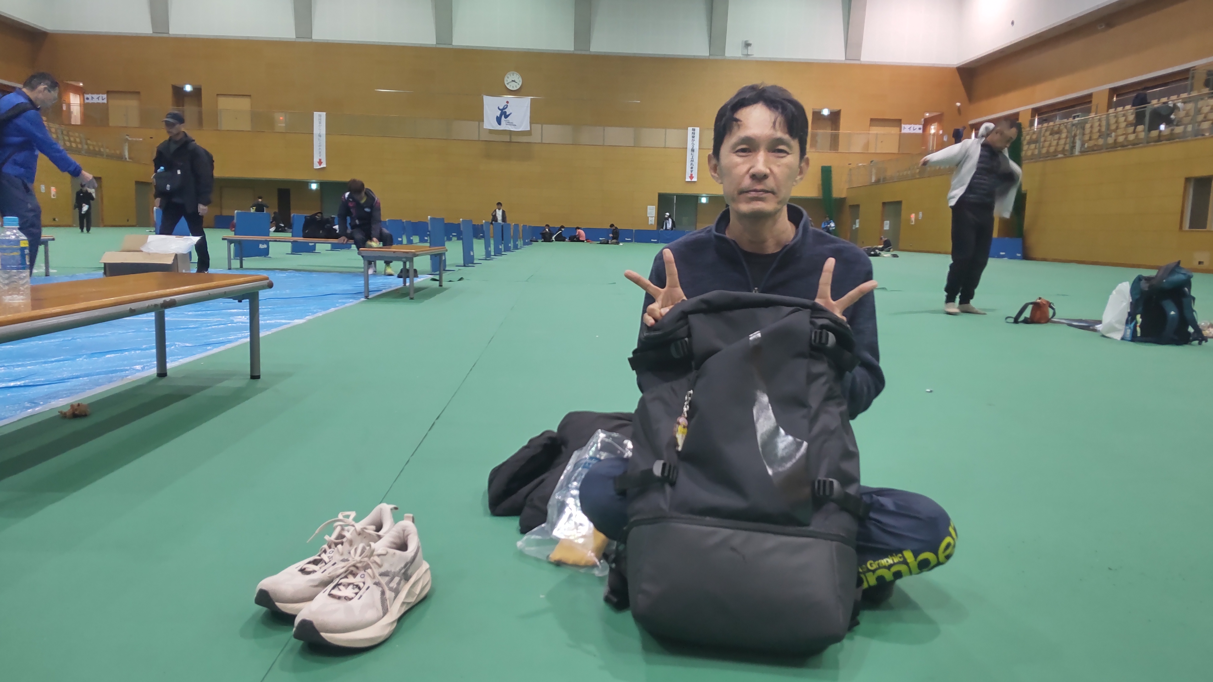写真はレース後誰もいなくなった控え室(体育館)で。