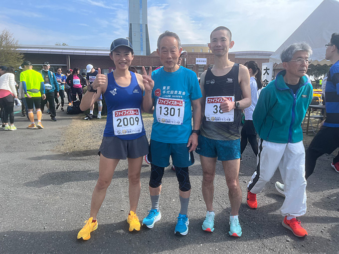 ミキティーにばったりお会いし、ついて行けるところまでご一緒させていただこうかと追いかけましたが、2キロで姿が見えなくなりました笑