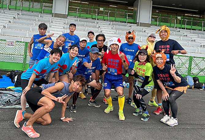 大宮公園走ろう会ヤングチーム(佐々木ゆめ、宮本英治、宮本晃子、角田)は25周で29位、7分8秒、四チーム中トップ、大宮公園走ろう会シニア(辻、池田ママ、赤沼夫妻)は23周で38位、7分44秒、四チーム中3位でした。