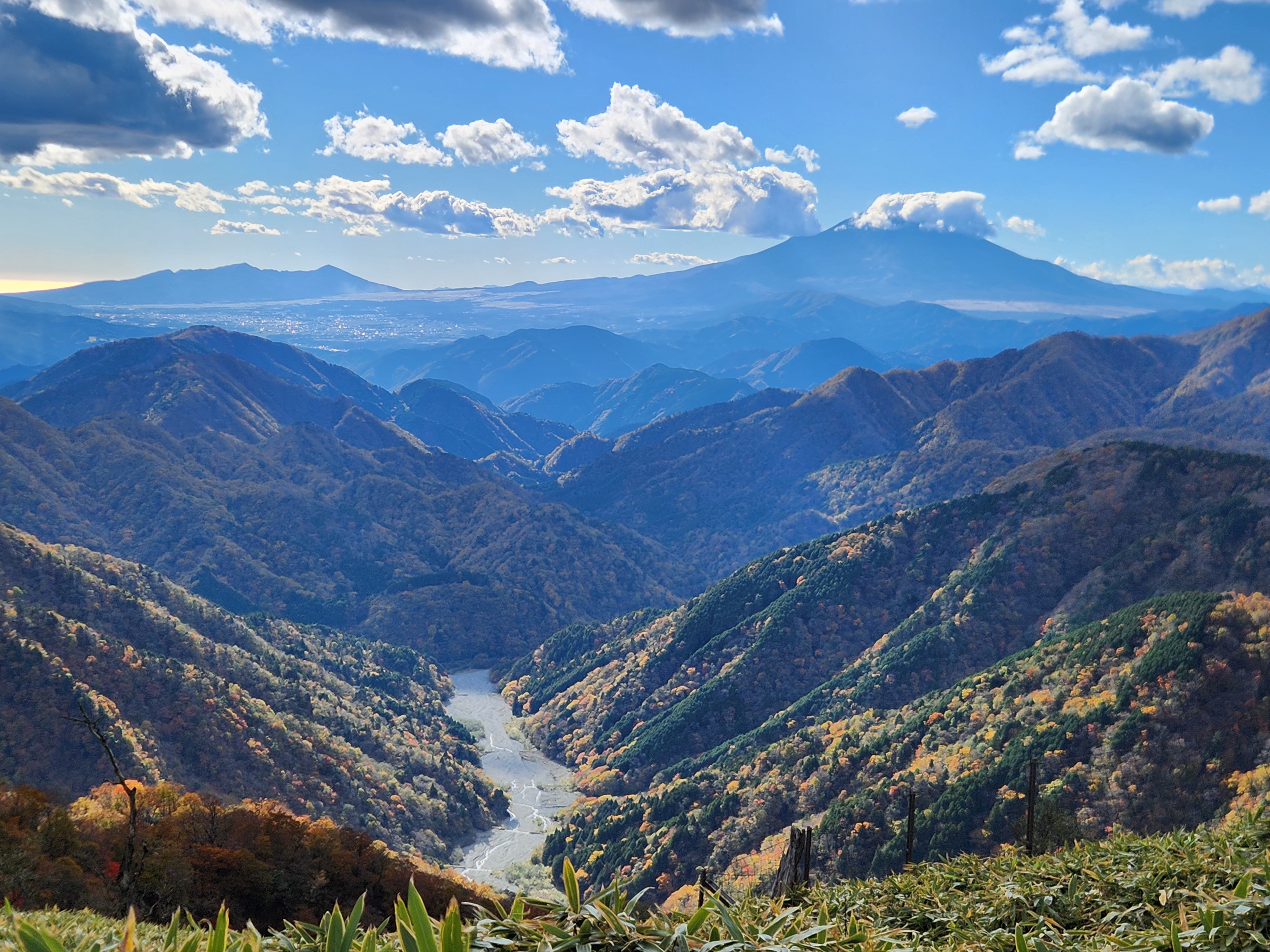 天気も良く景色のお裾分け写真、ユーシン渓谷と遠くに富士山が見えます🗻
