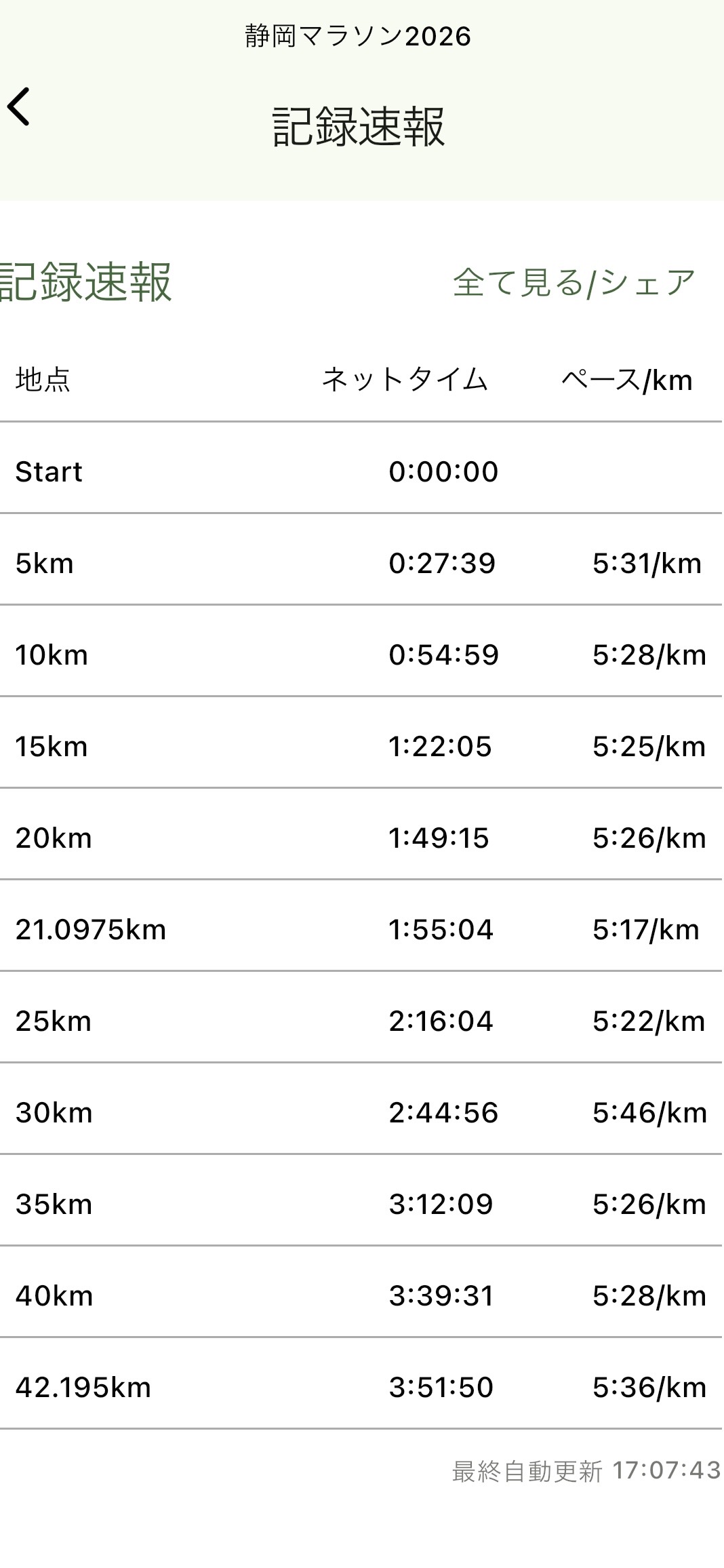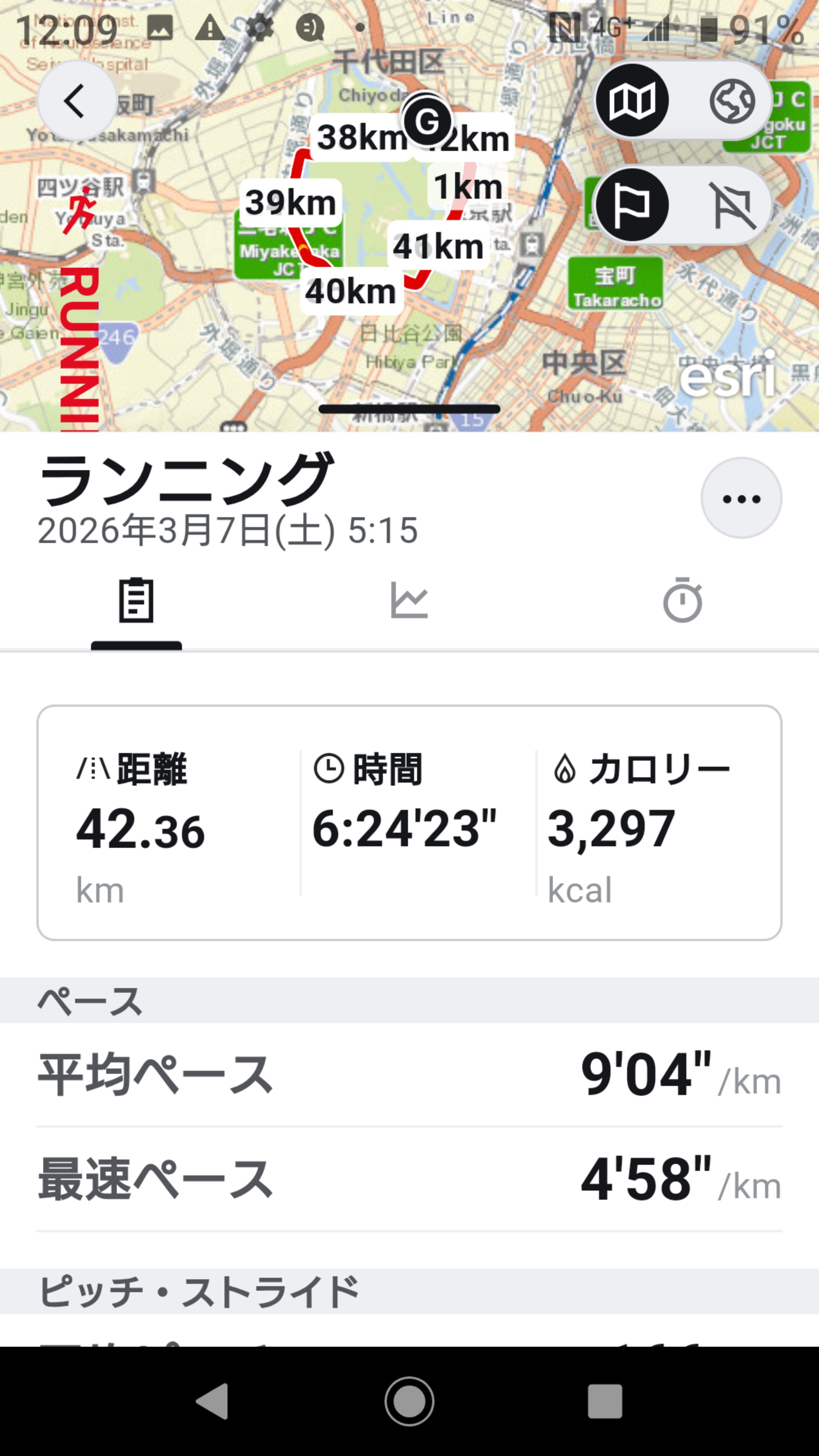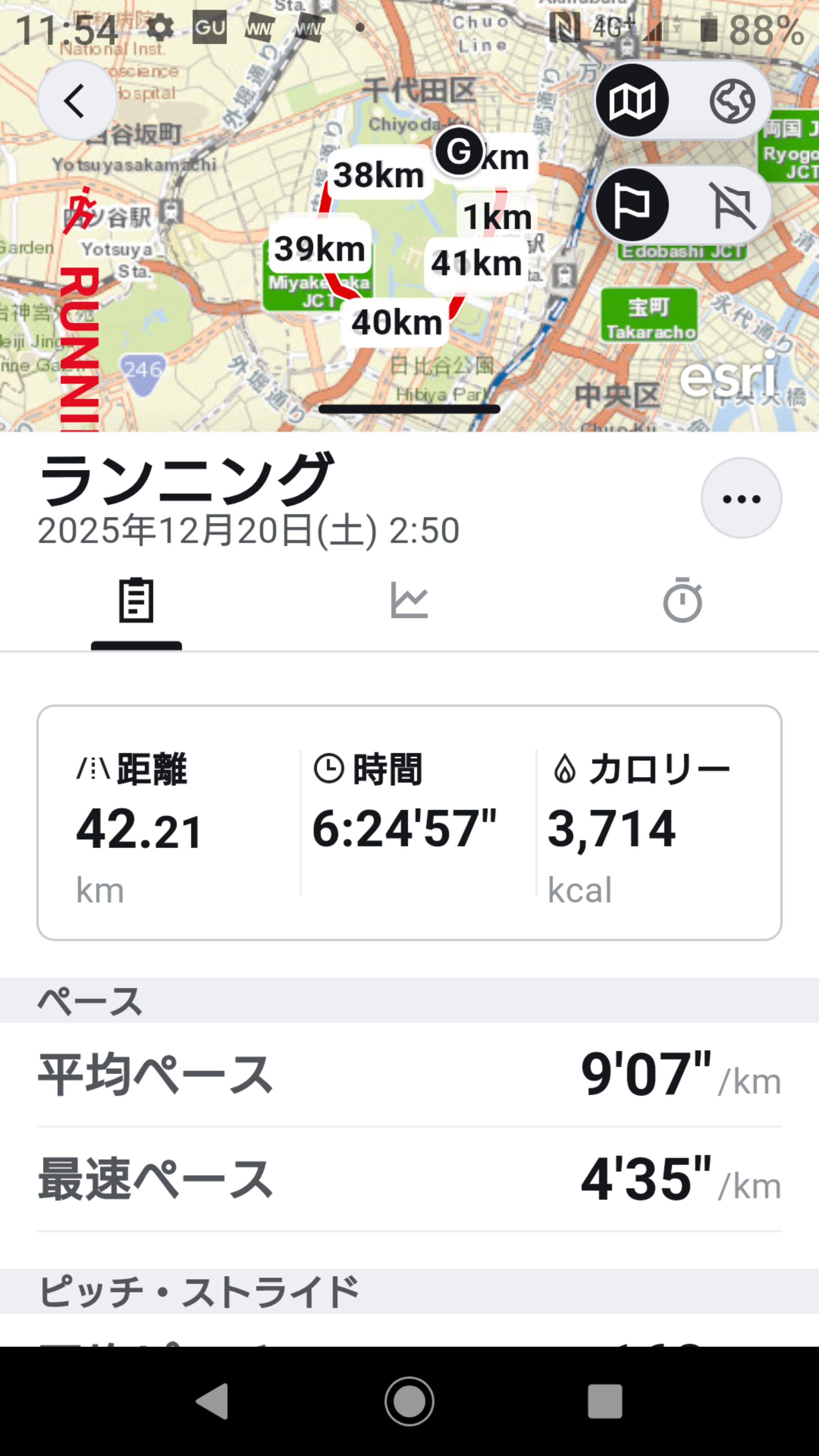 17Kの関門突破した後にペースダウンし、20Kに行く手前から残り1分コールでペースアップして無事通過。東京タワーに行く登り坂はきつかったけど何とか完走出来ました。