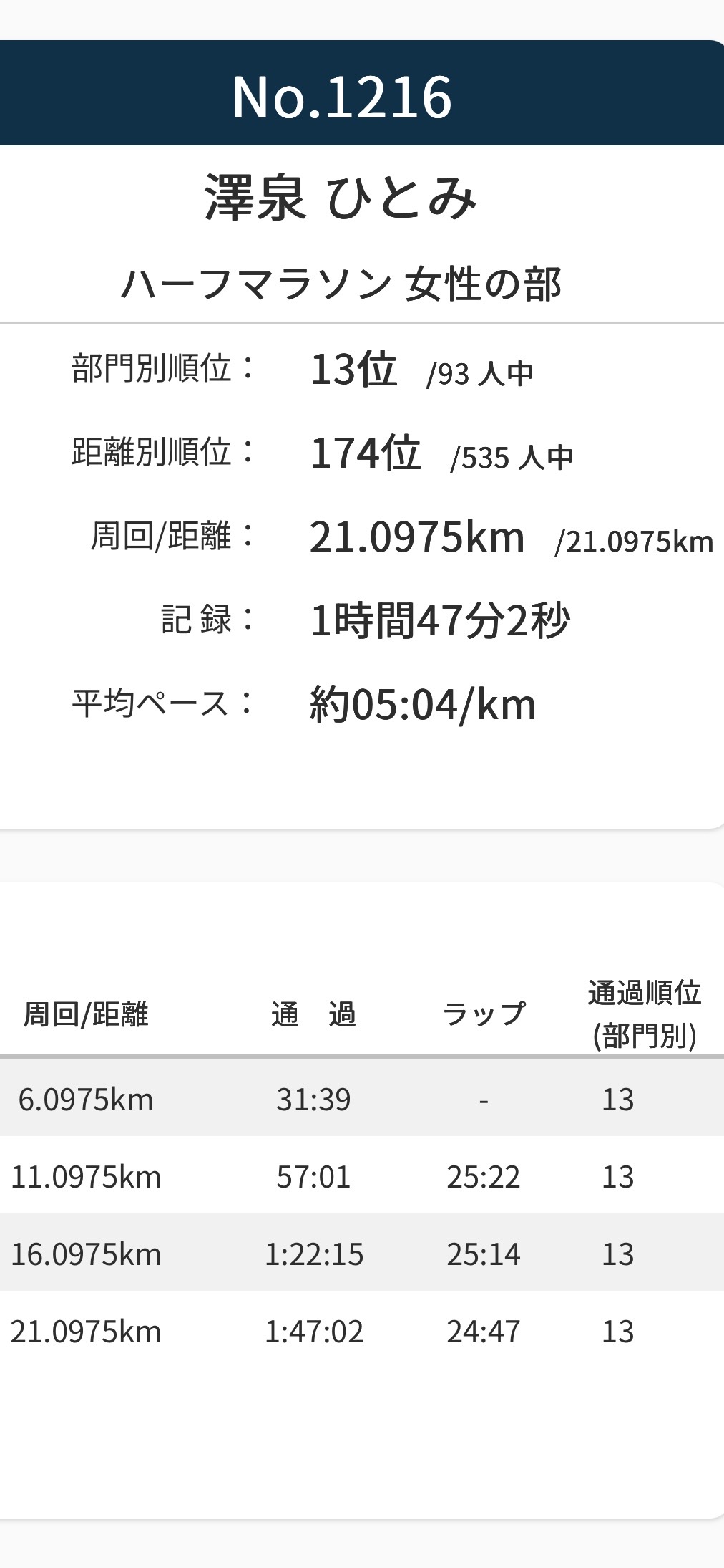 結果としてはグロス(3:57:33)、ネット(3:51:50)で、前回より僅か1〜2分ほどですがPB更新しました!!今回3:50:00を切れたらと思っていたのですが、最後粘る事で精一杯でした🥹おでんを食べてなかったら切れてたのか?とも思いましたが美味しかったので良しとします♪♪
