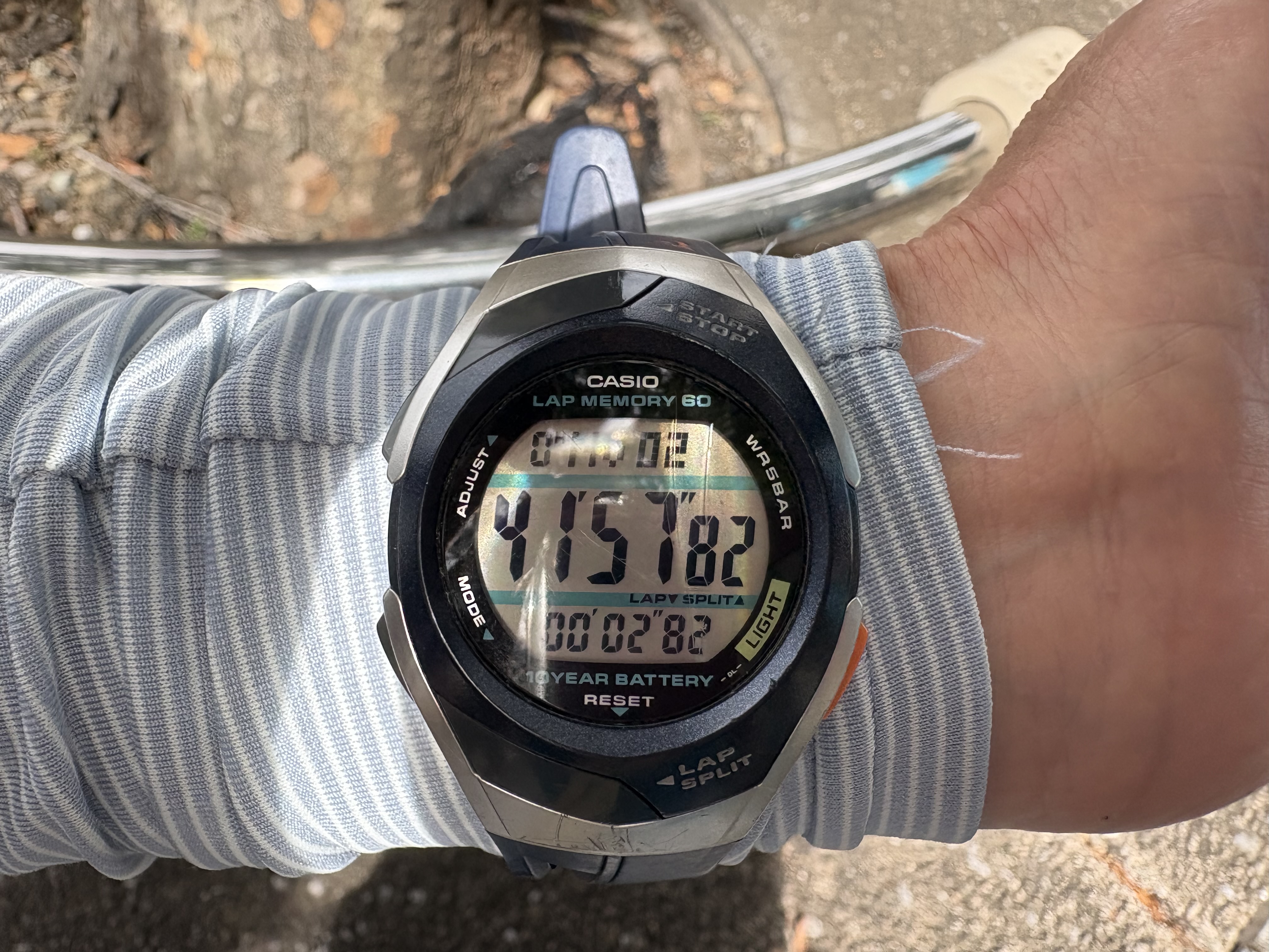 先日のTTは雨で欠席、こんどの日曜に皇居でリモートTAをしようと思ったが、どうも天気予報が思わしくないので、快晴の本日、最寄りの公園で実施。先月TTより19秒早く、これから自宅打ち上げの一杯が楽しみ。