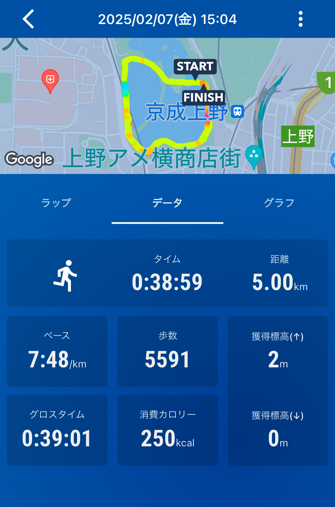 上野公園の不忍池を4周しました。タイムが良くなかったのは、観光客が多かった、ということにしました。