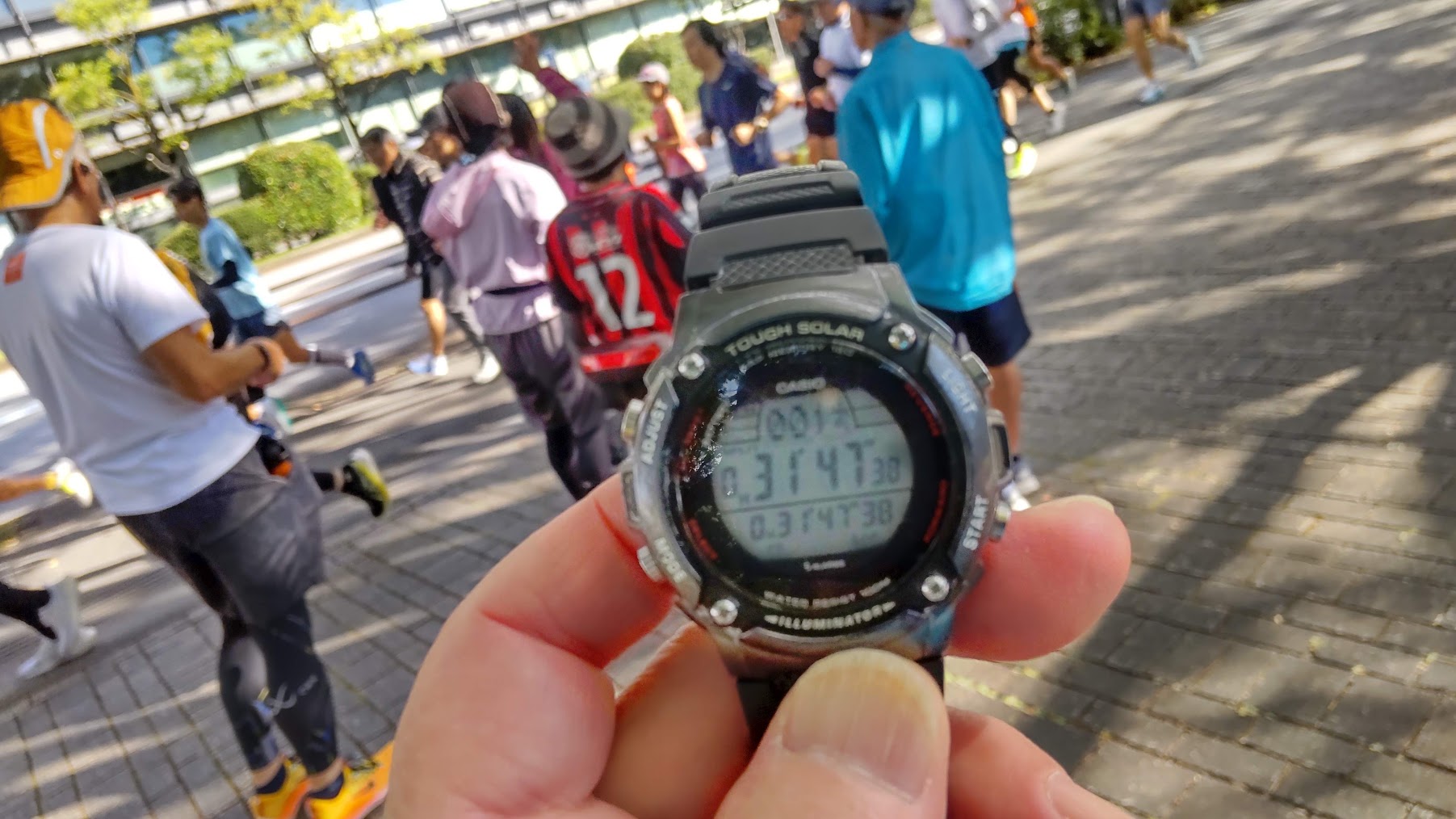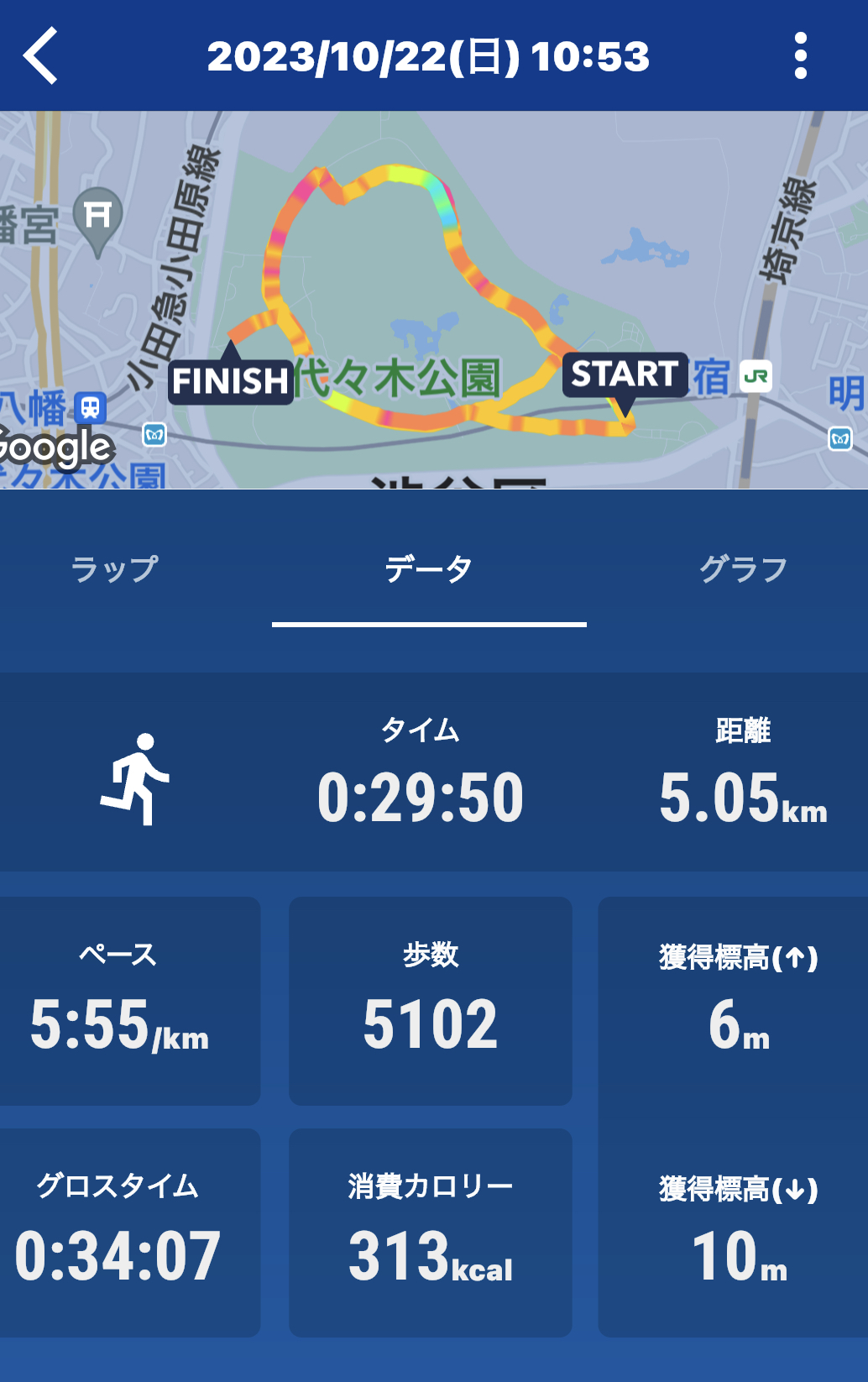 平坦なコースをぐるぐるなので皇居に換算したら最低でも+1分は補正が入りますね(^_^;)