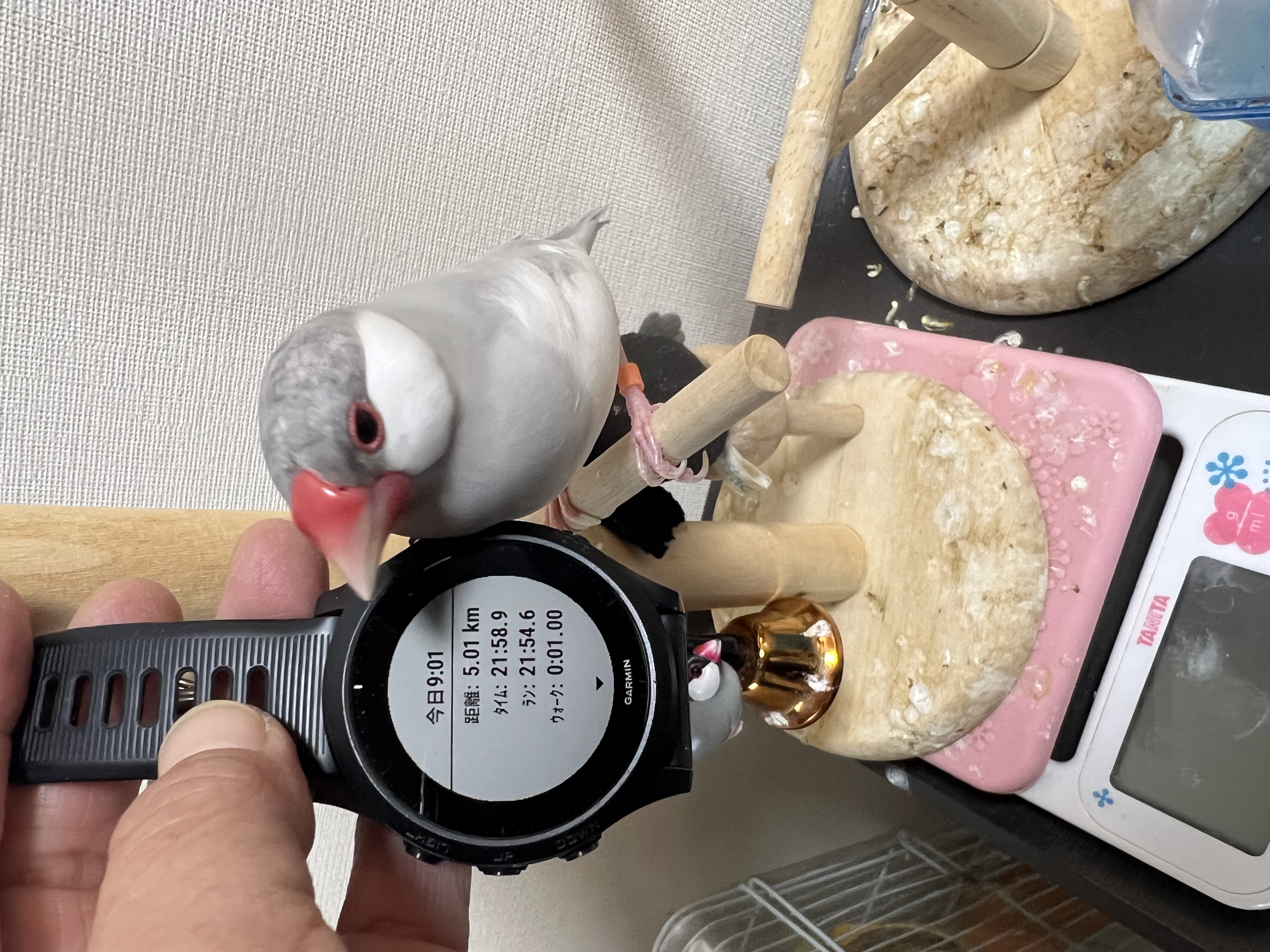 今年生まれのシルバー文鳥のさくちゃんがタイムを