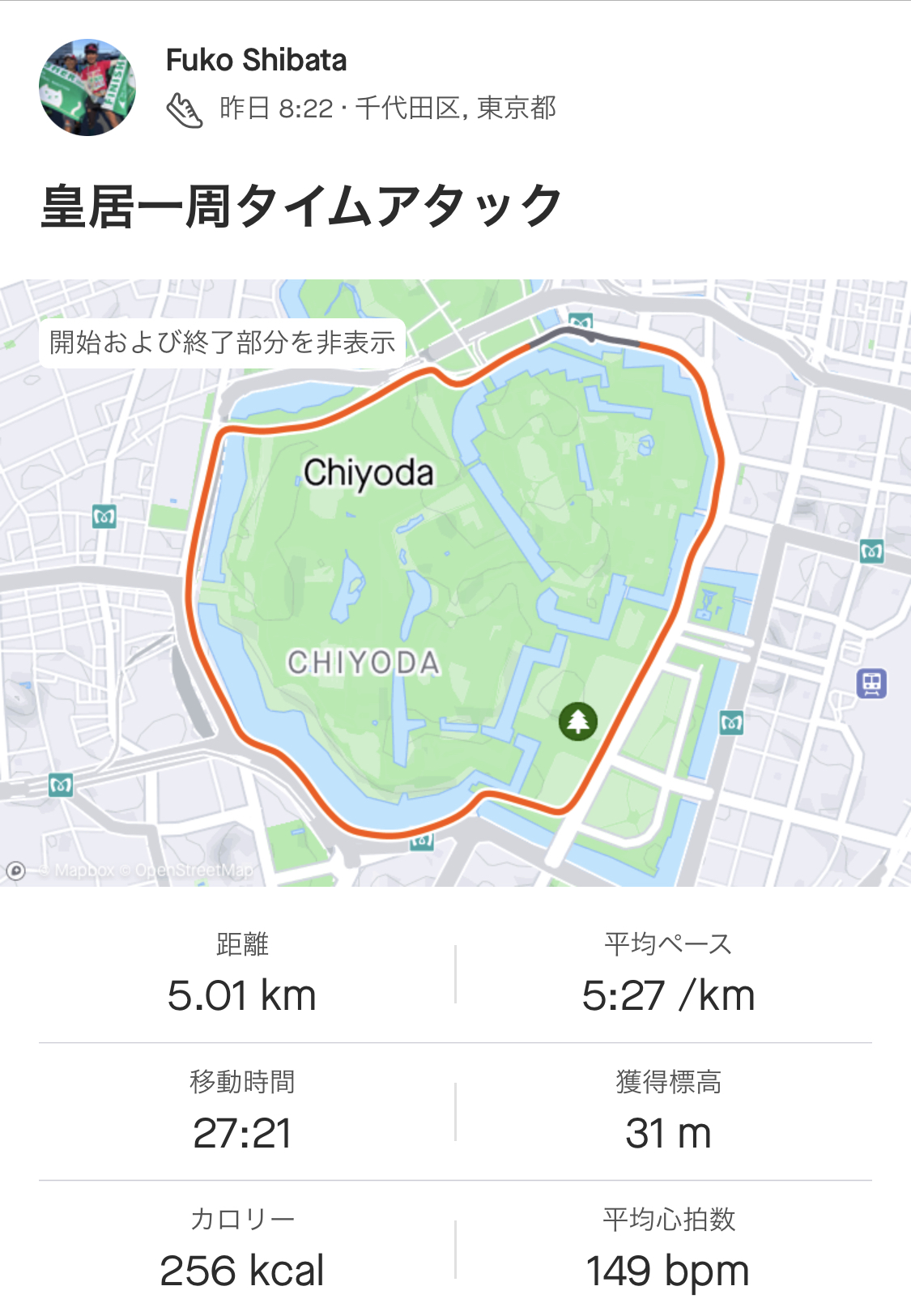 皇居で一斉タイムアタック、今月に入り土曜日休み無しの6連勤が続き、身体が重かった😱桜田門からジョグペースで走る里香ちゃんに引っ張ってもらい何とかゴール出来ました😃ありがとう❤️急きょタイムを測って頂いたちーちゃん、大門ママ、貞子さんに感謝です✨