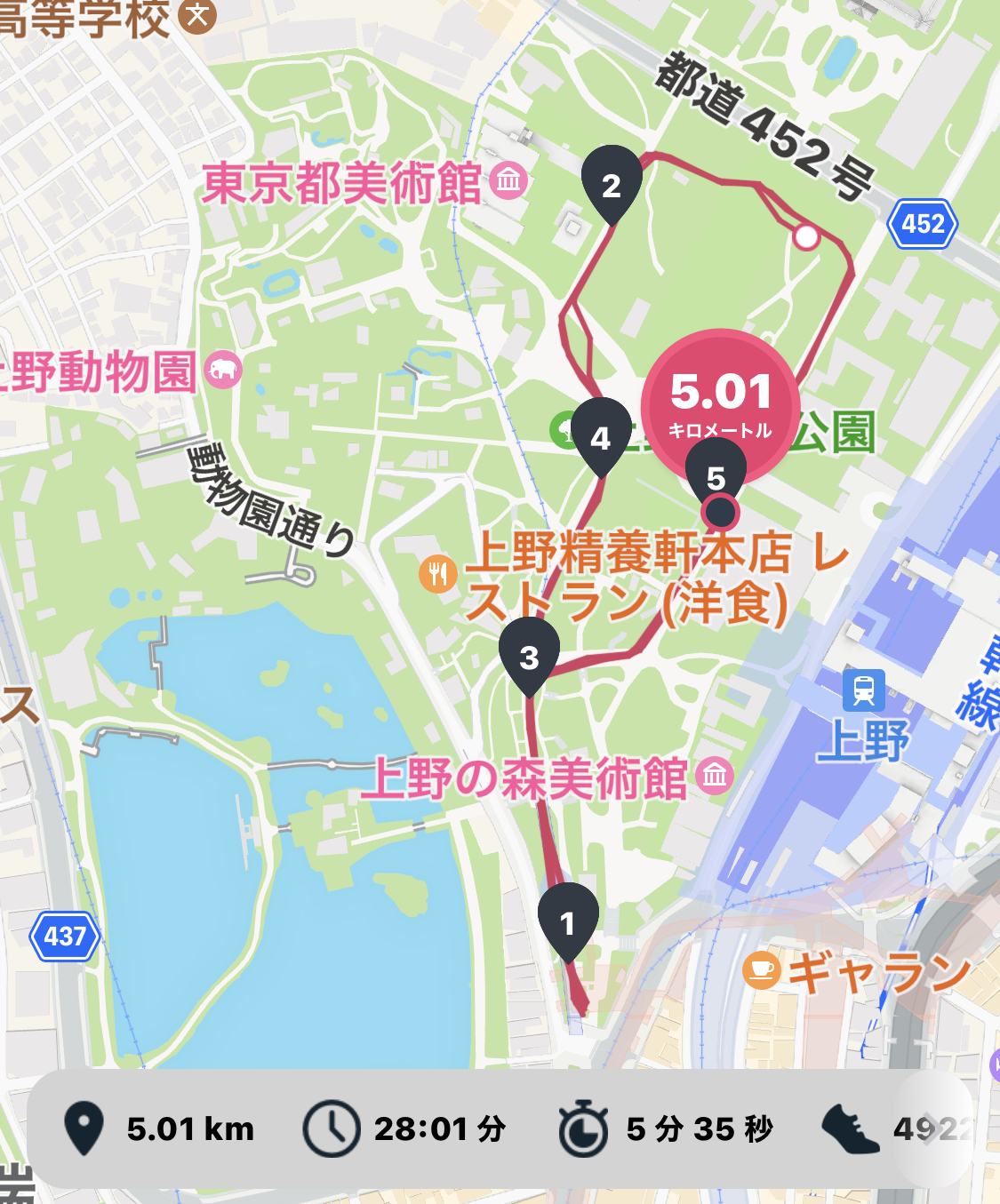 上野公園内をぐるぐると走りました。10/18(木)の午後でしたので、観光客が多くスムーズに走れませんでした。うしし、言い訳たらたらです。