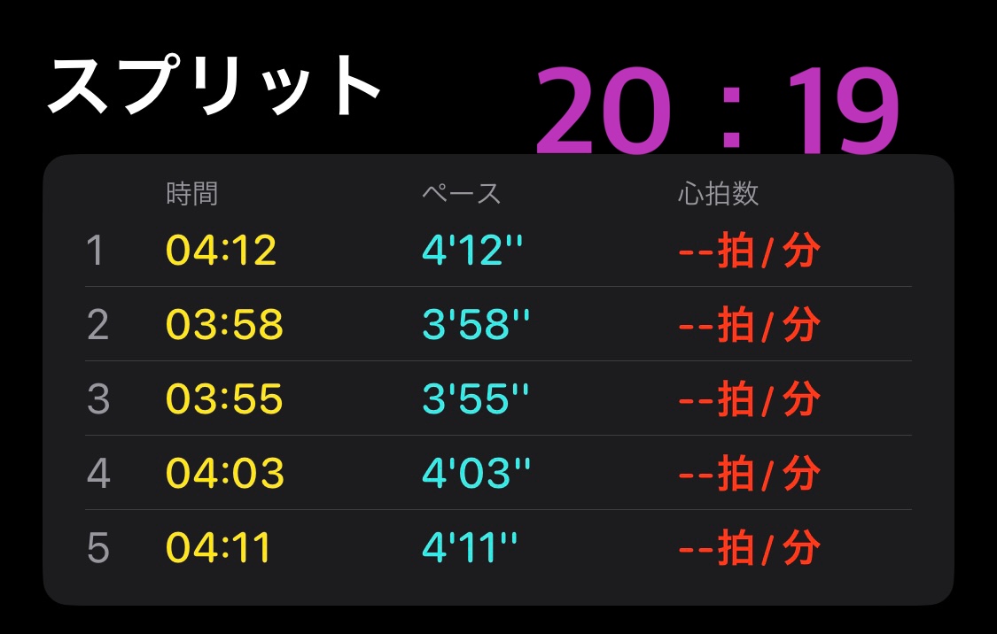 投稿遅れました。テレワーク後の夜に実施。気温が下がってタイム上がると思いきや気負いすぎました。