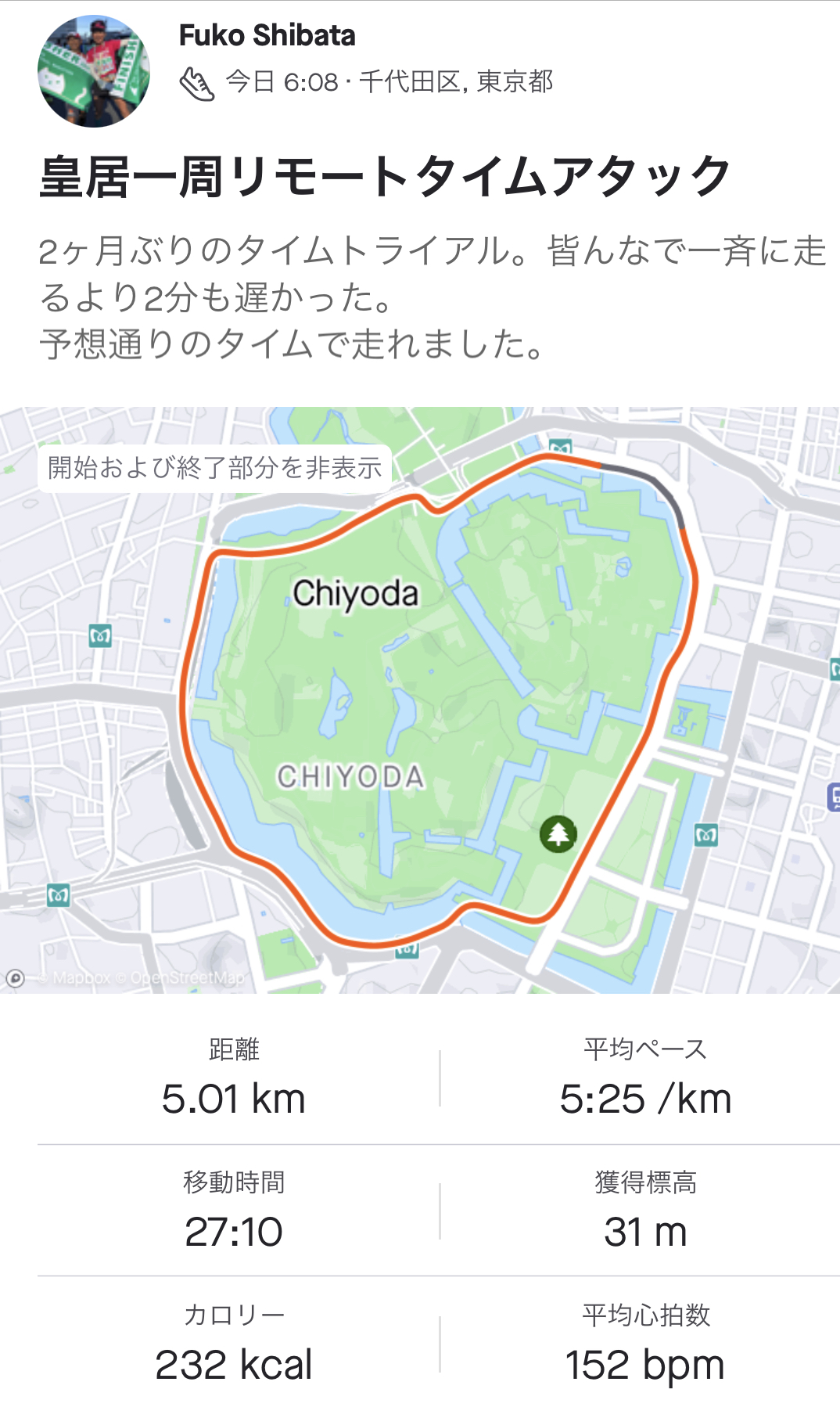 先週の日曜日、皇居でのリアルT Tのタイムです。ありがとうございました😊