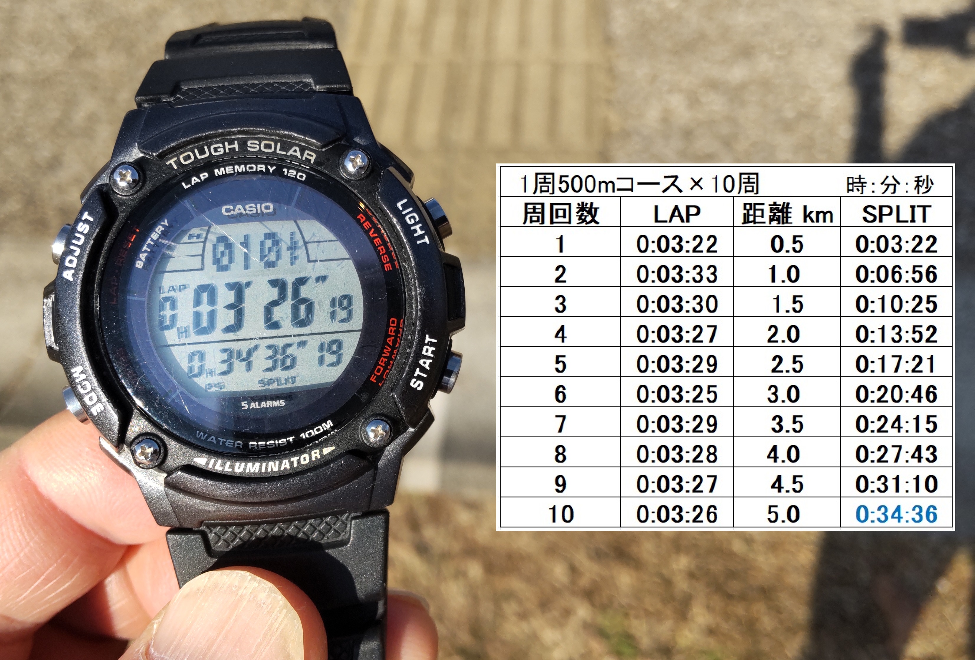来年の申告タイムトライアルを控えて、本日は極力、日ごろのホームコース練習のスピードで挑戦。普段は7分15秒/km前後ですが、今日は会場の路面条件がいいせいか、6分55秒/kmでした。申告タイムは34分30秒で参加しようかな。