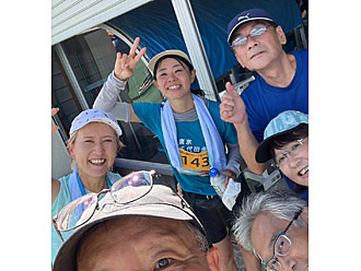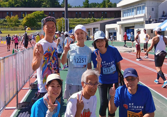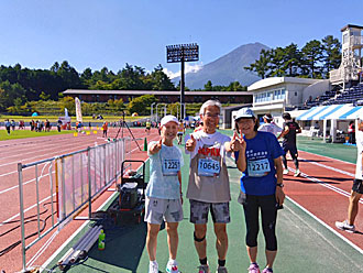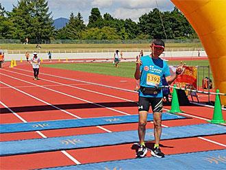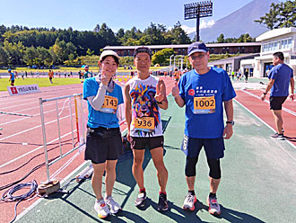 火祭りマラソン、みなさんがお帰りになった後、松井さんが根性のゴール!ラスト3kで脚が攣ってしまったそうです。