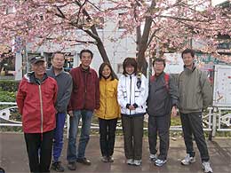 | 渡部、高野(渡部さんの友達)、小林、北原、小野寺、茂木、柏田 河津桜の前で藤田、吉田順、寺崎、秋本 |