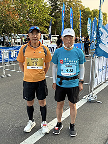 池嶌勝利≫スタート前に会場で今年サロマンブルーになられた千代田の小島さんとエール交換しました。