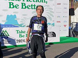 雲一つない快晴。富士山がきれいに見えました。そんな季節外れの暑さの中、走って来ましたが、5時間以内にゴールするのが、やっとでした。