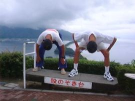 天野橋立の「股のぞき」のことは昔より誰れゆうことなく巷にながれたもので今日では全国的な愛称となっている。各所に設けてある「股のぞき台」の上で股をひらき頭を深くさげていると、だんだん頭に血が充血して目が廻るようになり、まさに天橋立が幻想的に紫紺の空につづくようになる。