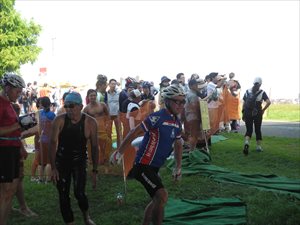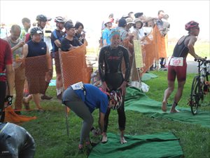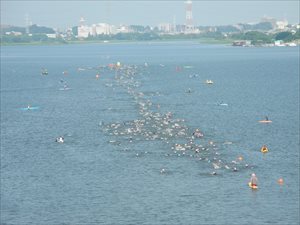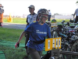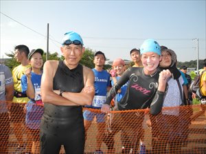 スイムでは私は川那部さんに700mまでは付いていったのですが実力差は如何ともしがたく離されてしまいました。柴田さんも先が見えない水質の中頑張ってくれました。