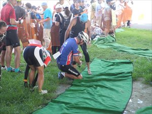 上記の通りランは通常10キロなのですが今年は気温35℃になる見込みとのことで約3.4キロに短縮になりました。スイムは水温30℃になると中止になる場合があるのですが当日は29℃とギリギリセーフでした。