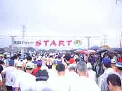 この日は後で知ったのですが、あの金メダリストの高橋尚子さんが飛び入り参加されていました。 去年のこの大会で転んで骨折をした事もあり、小出監督からは止められていた様ですが、彼女がどうしてもと言うことで急拠参加することになり、オリンピック以来20km以上走ったのは初めて、久し振りに走って気持ちよかったそうです。 それ程早く走ってなかったので、始めに知っていれば頑張って付いていったのに・・・・・残念でした。