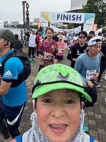 継ぎ目に敷いたシートが濡れて滑り、転びそうになりながらキロ6:30にペースダウンしましたが具合悪くならず、楽しくゴール出来ました。